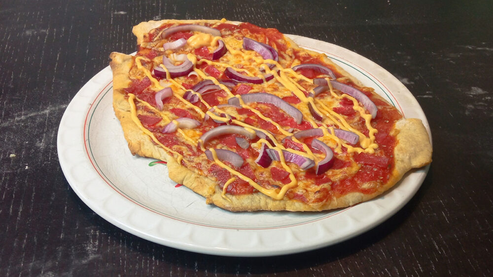 Och även om man gräddar bakpulverpizzan på hög värme (vilket man absolut bör), blir den mer som ett snabbt mellanting än en riktig pizza. Det är fullt ätbart – men du kommer inte lura någon pizzabagare.