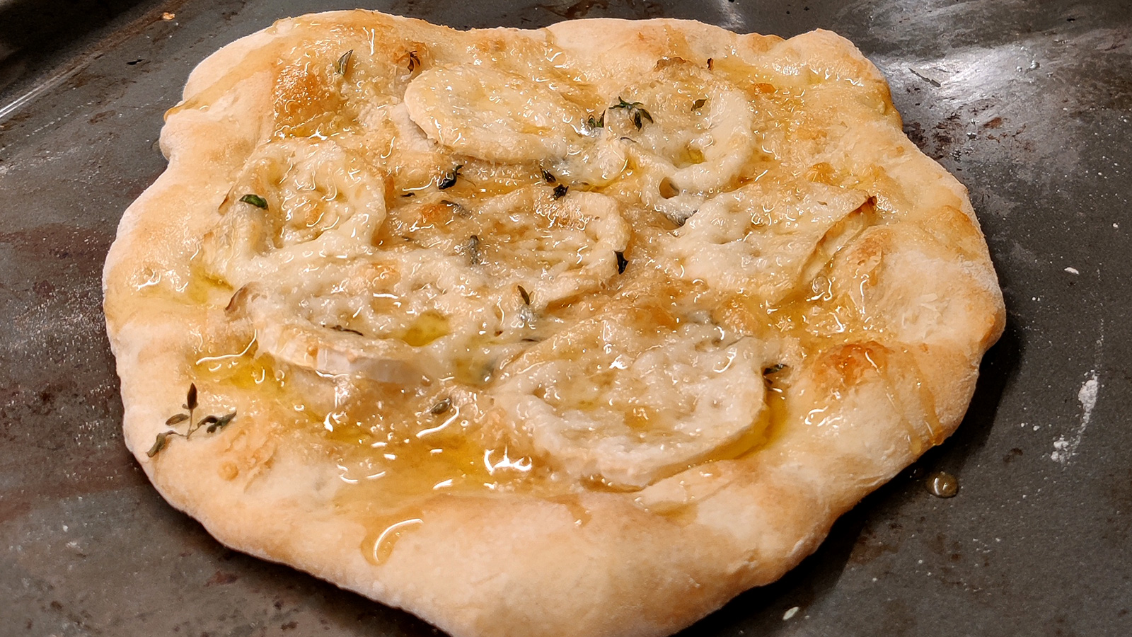 Pizza med getost (chèvre), honung och timjan