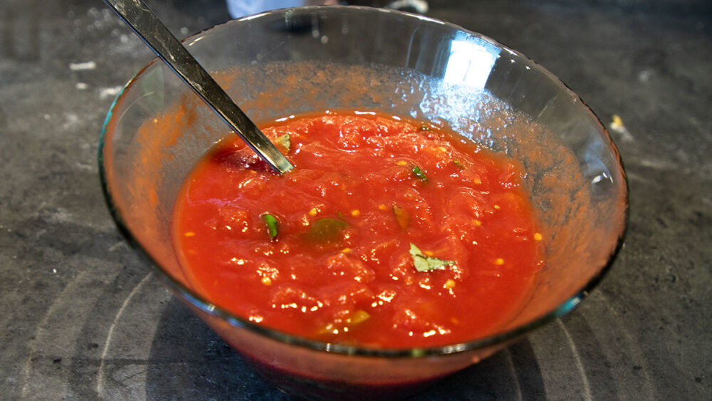 Här kommer en kort variant av vårt recept på denna sås. Vill du läsa en längre version kan du göra det här – Napolitansk pizzasås