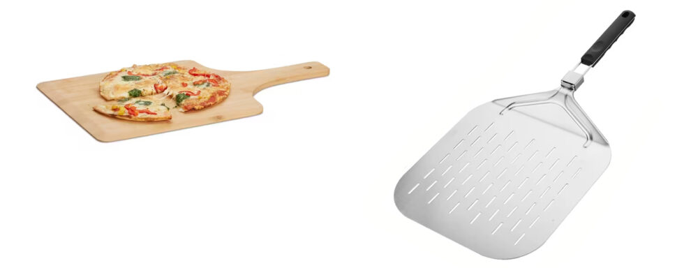 - Metallspade – tunn, smidig och perfekt för att lyfta ut den färdiggräddade pizzan. Metall gör det enkelt att glida in under pizzabotten utan att skada den, men rå deg fastnar lättare än på trä.